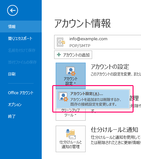 『アカウント設定』→『アカウント設定』の順番にクリックします。
