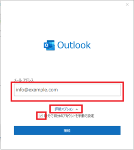 入力欄にメールアドレスを入力し、『詳細オプション』をクリック、