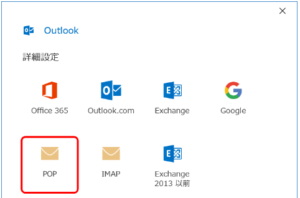 - 『詳細設定』画面が表示されますので、『POP』をクリックします。