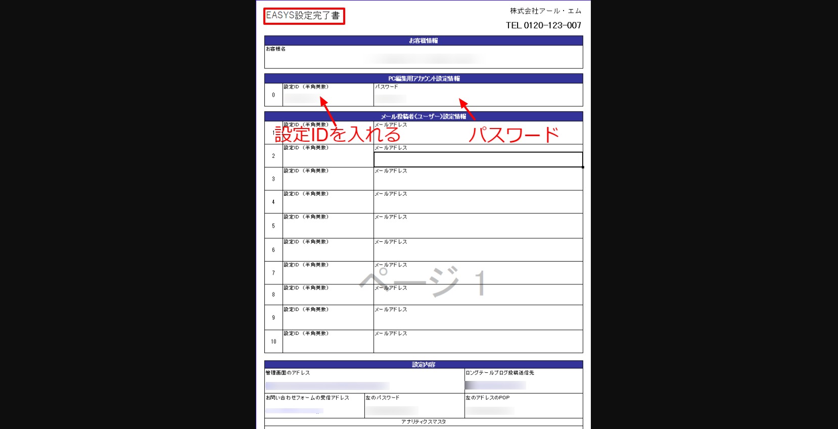 設定IDとパスワードは納品時にお渡ししているEASYS設定完了書を参考にしてください。