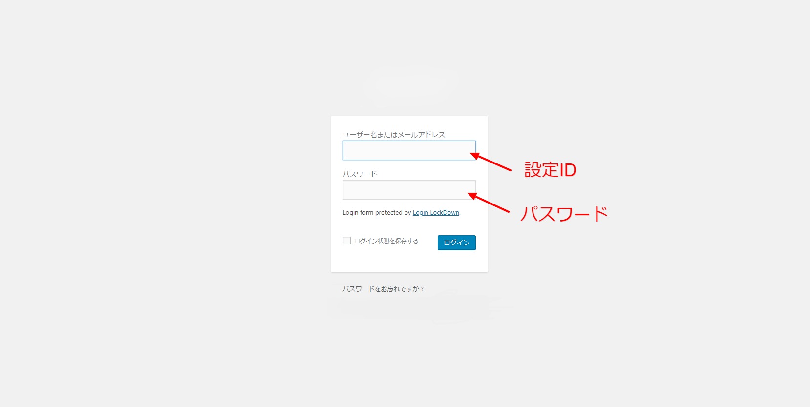 管理画面を開くと「ユーザー名またはメールアドレス」「パスワード」を要求されます。
