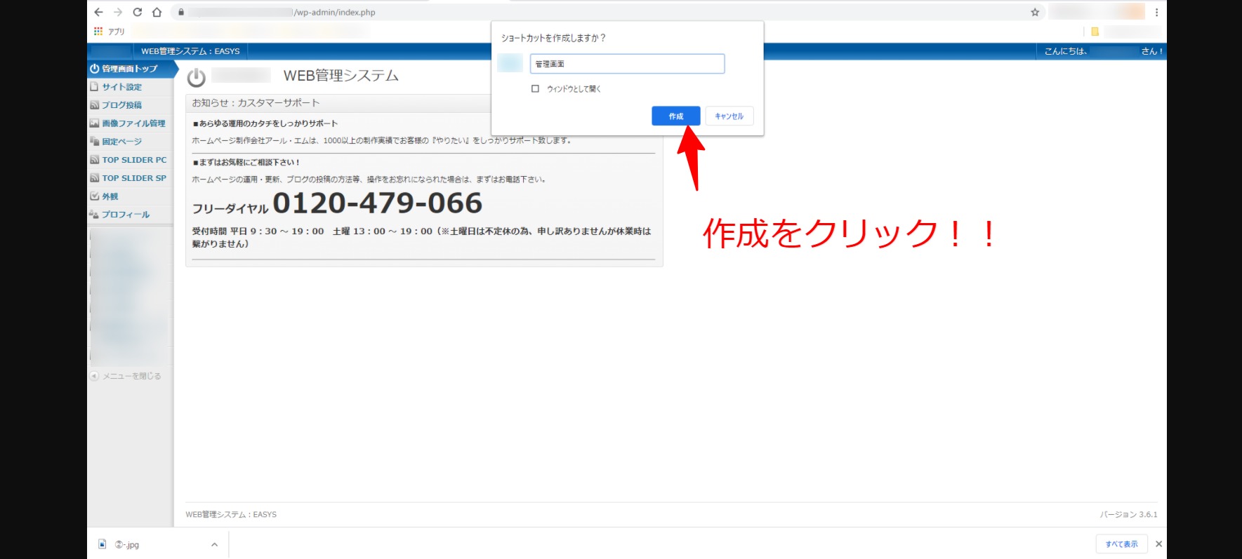 なのでGoogle chromeを開いて頂いて管理画面URLを張り付けて検索をお願いします。
