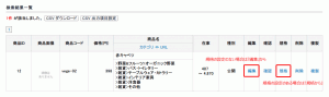 検索結果の『編集』のリンクより価格を含む商品情報を変更していただけます。