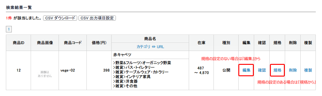 ※EC-CUBEではサイズ等のバリエーションを規格と呼びます