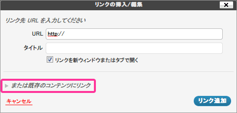 最後に「リンク追加」をクリックすると選択したテキストにリンクが挿入されます。