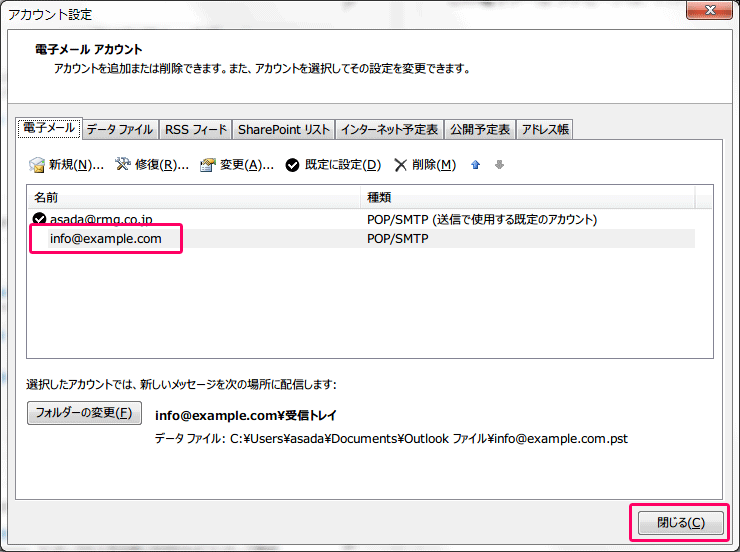 必ず 実際にメールを送信する、受信する操作を行って動作を確認してください。
