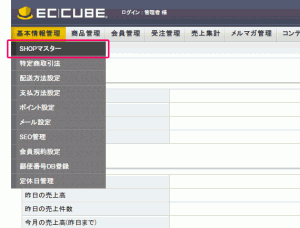 2. ログイン後の画面上部の『基本情報管理』のサブメニューより『SHOPマスター』をクリックします。