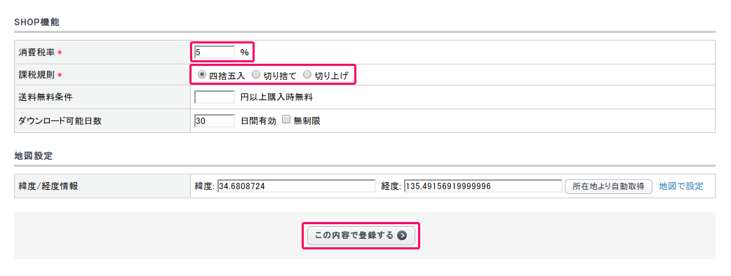 入力が完了したら『この内容で登録する』をクリックして入力内容を保存してください。
