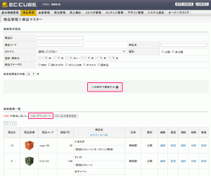 1.商品管理>商品マスター>この条件で検索する をクリック。