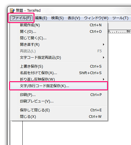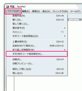 2.保存しておいたCSVをTeraPadで開き?UTF-8(BOMなし)で保存しなおします。