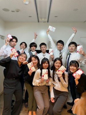 弊社は、お金のありがたみを実感してもらいたい!という思いから、新卒1回目のお給料は手渡しで支給しております!